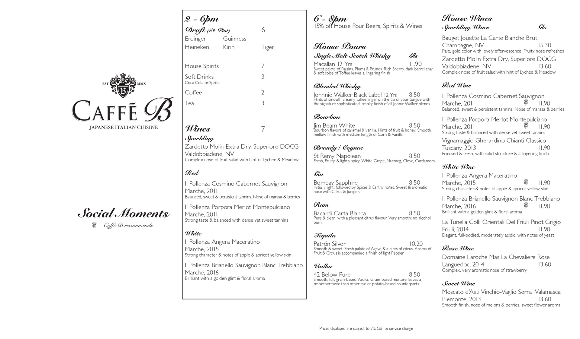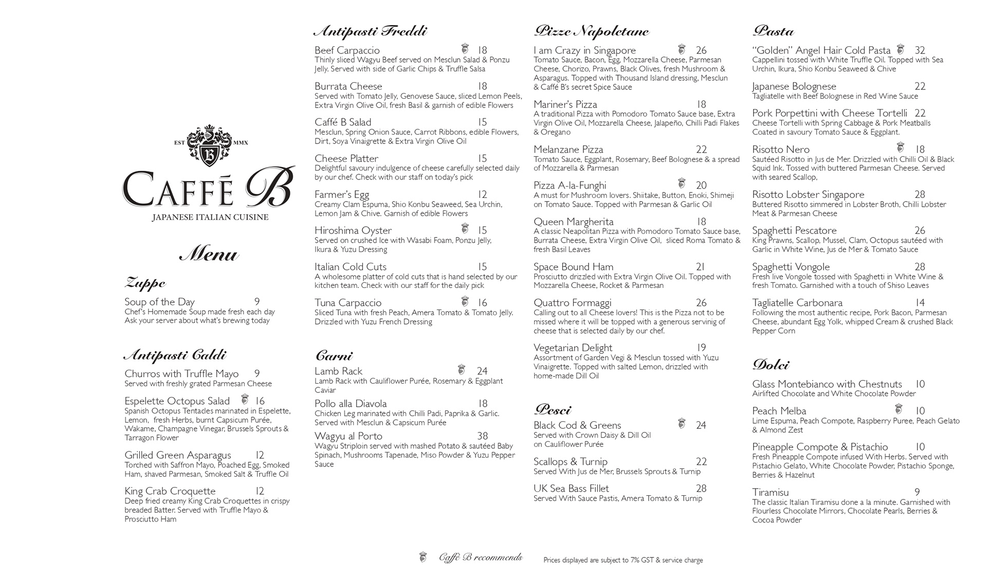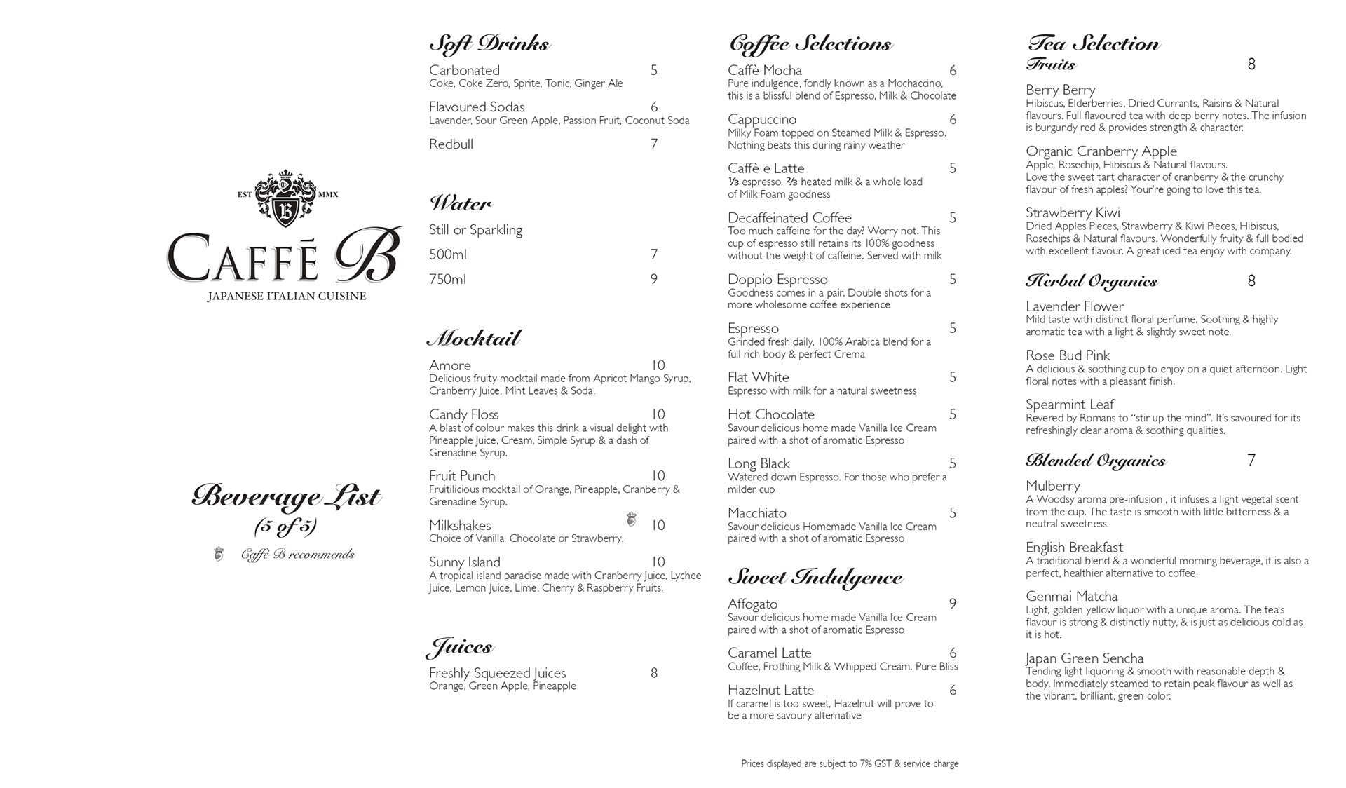 For Caffé B's spunky new home in club street, a brand new menu is in order. What's more to do than give it a bold splash of colour. A hint of fun combined with functionality to cater to the spread that it's kitchen and bar has to offer.